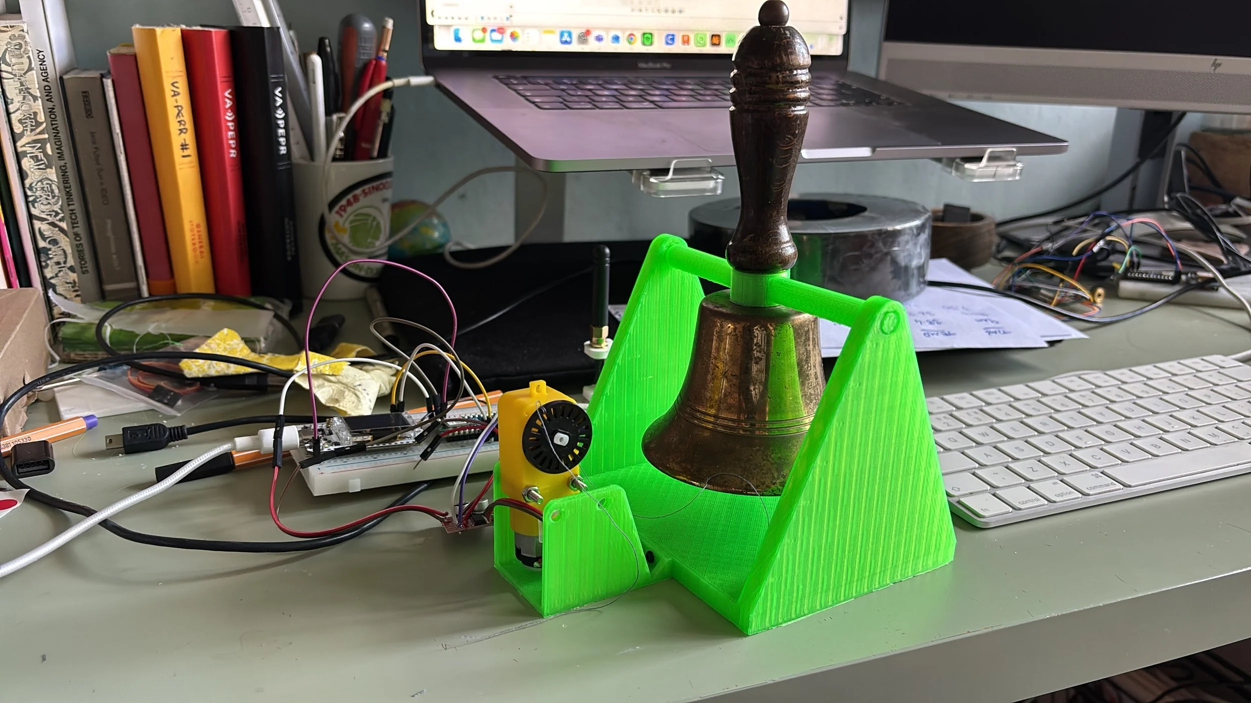 A LoRa-triggered physical bell. When the word "yes" is received over LoRa radio, the motor spins briefly to hit the bell.